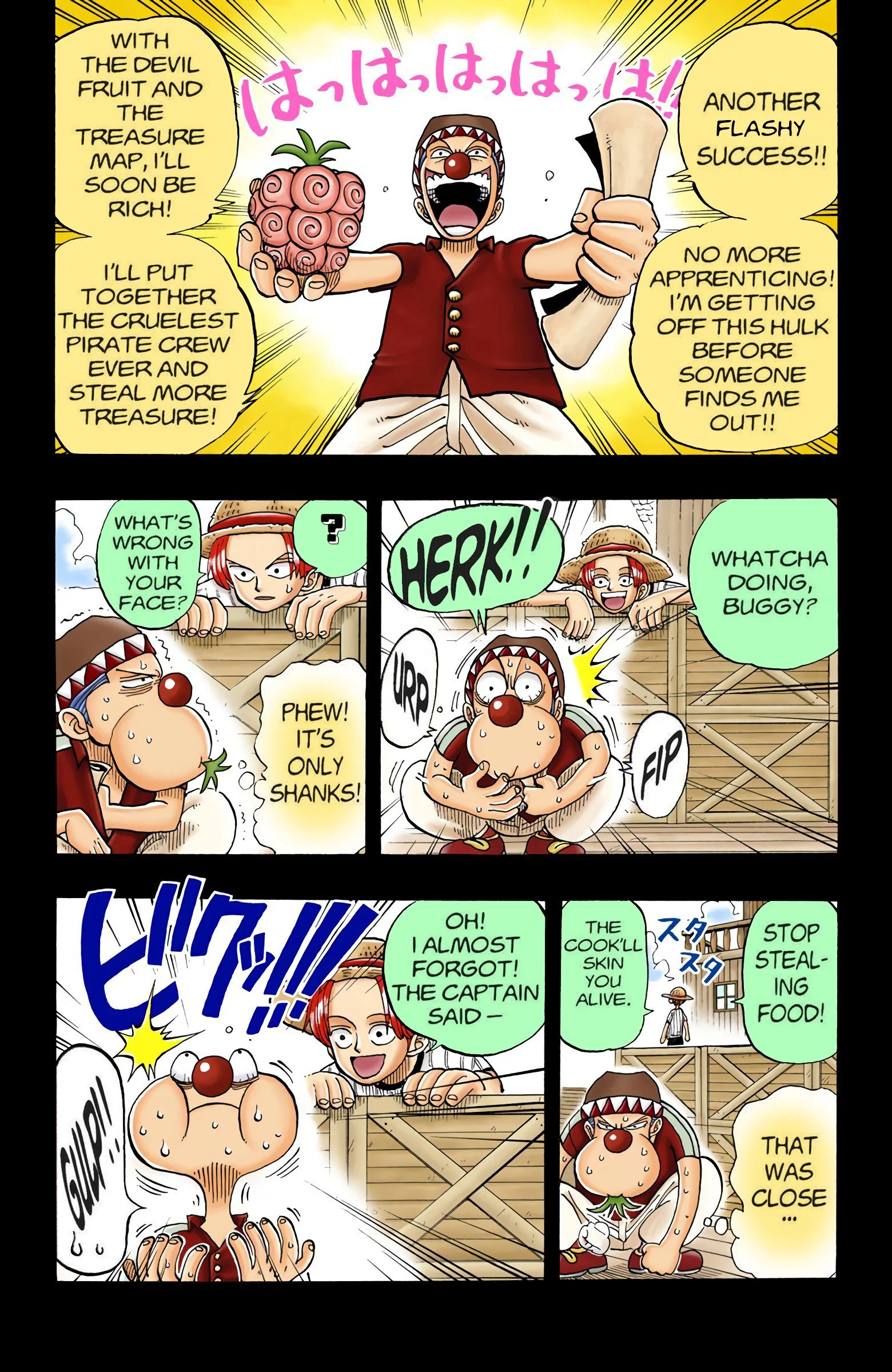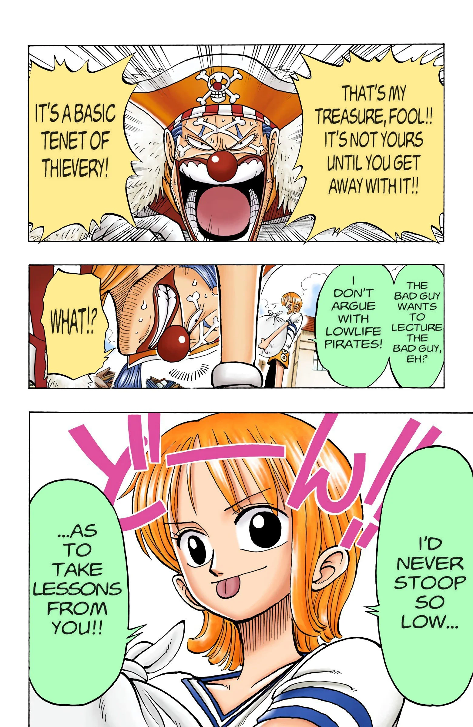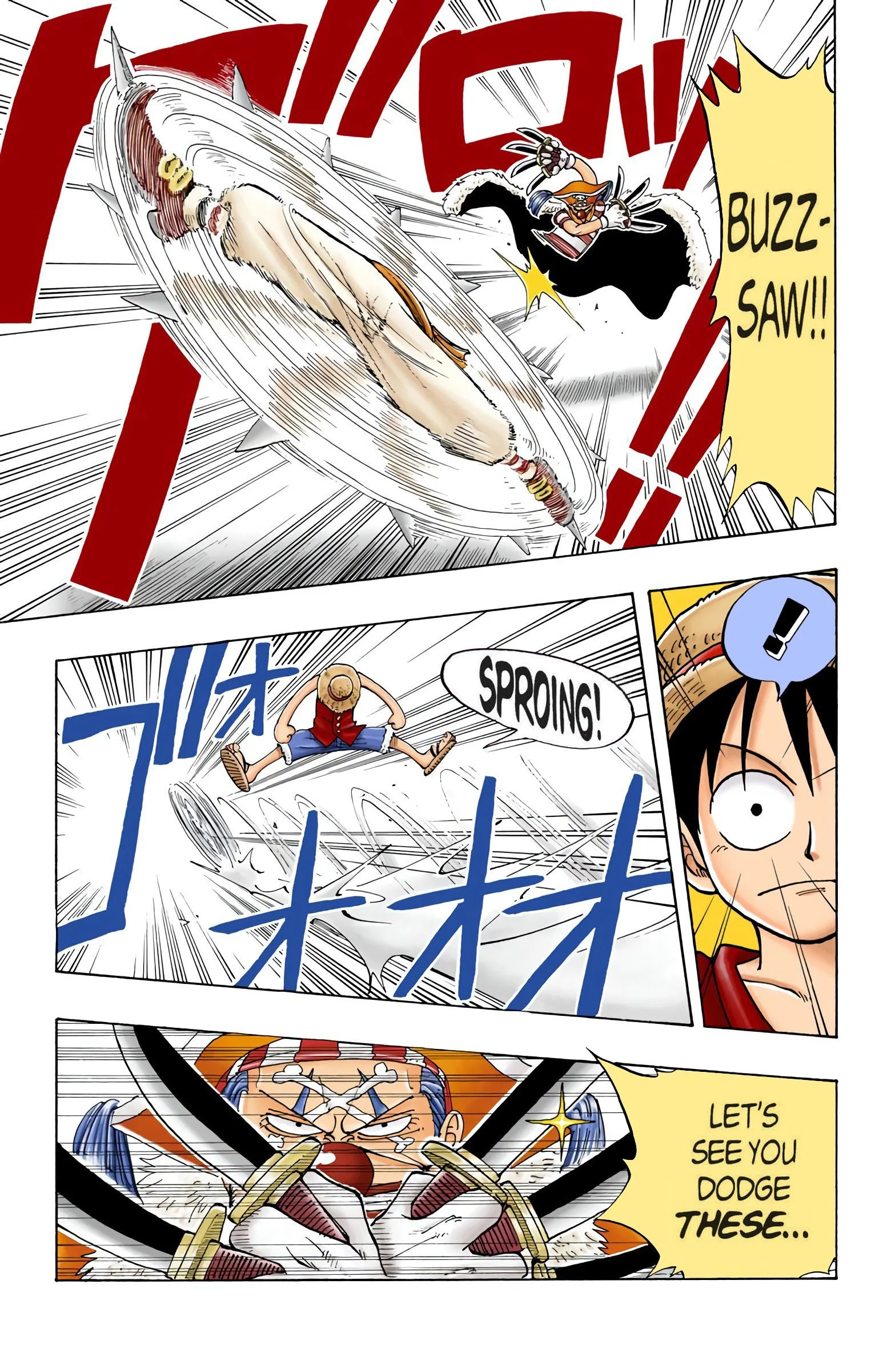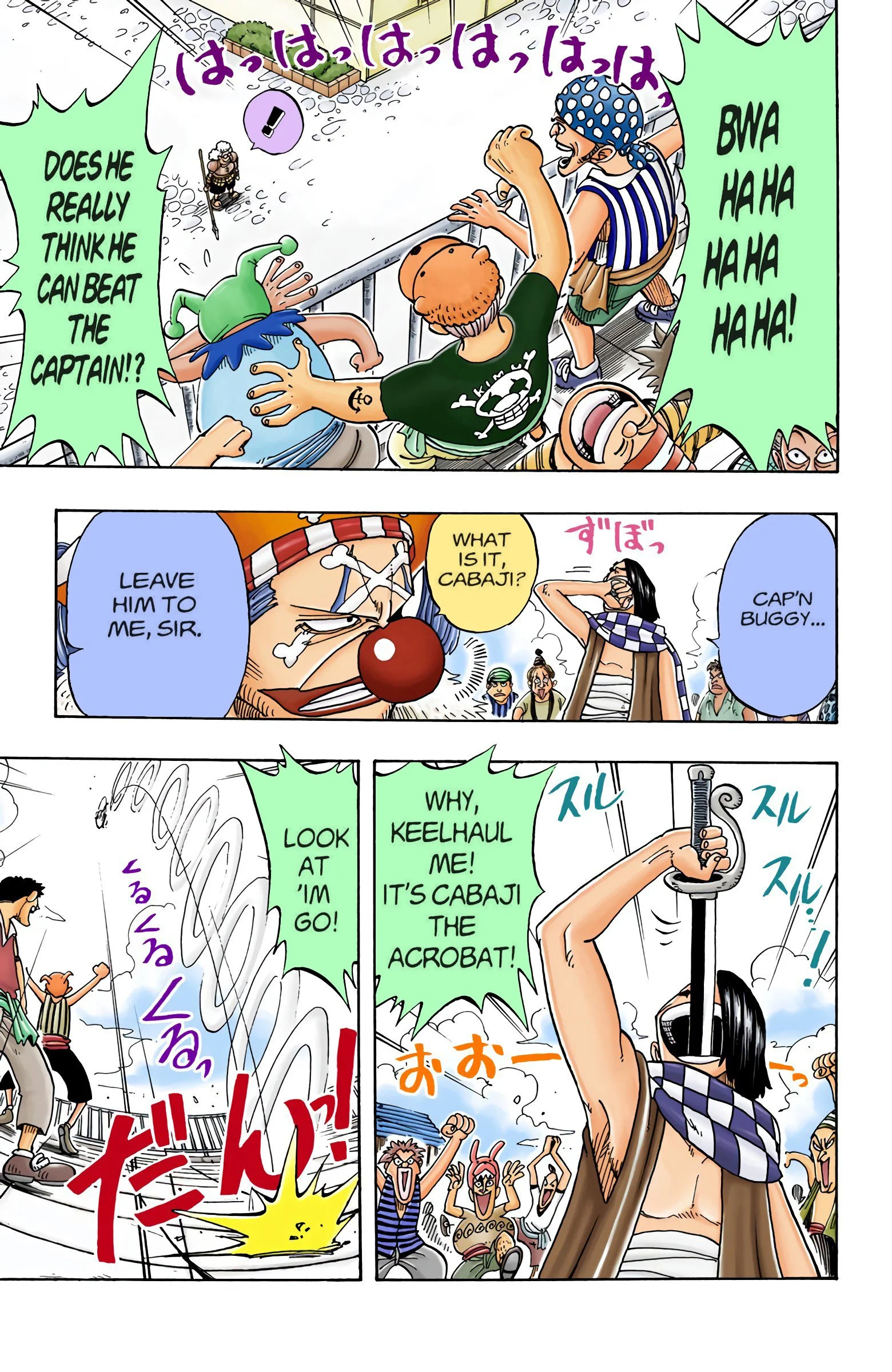 ONE PIECEseason one, “EAST BLUE”Voyage 1 | Voyage 2 | Voyage 3 | Voyage 4 | Voyage 5 | Voyage 6 | Voyage 7 | Voyage 8 | Voyage 9 | Voyage 10 | Voyage 11 | Voyage 12 S1 S2 S3 S4 S5 S6 previous season one, voyage three “VERSUS!! The Buggy Pirates” chapters 14 - 2110/27/1997 - 12/22/1997 next previous season one, voyage three next