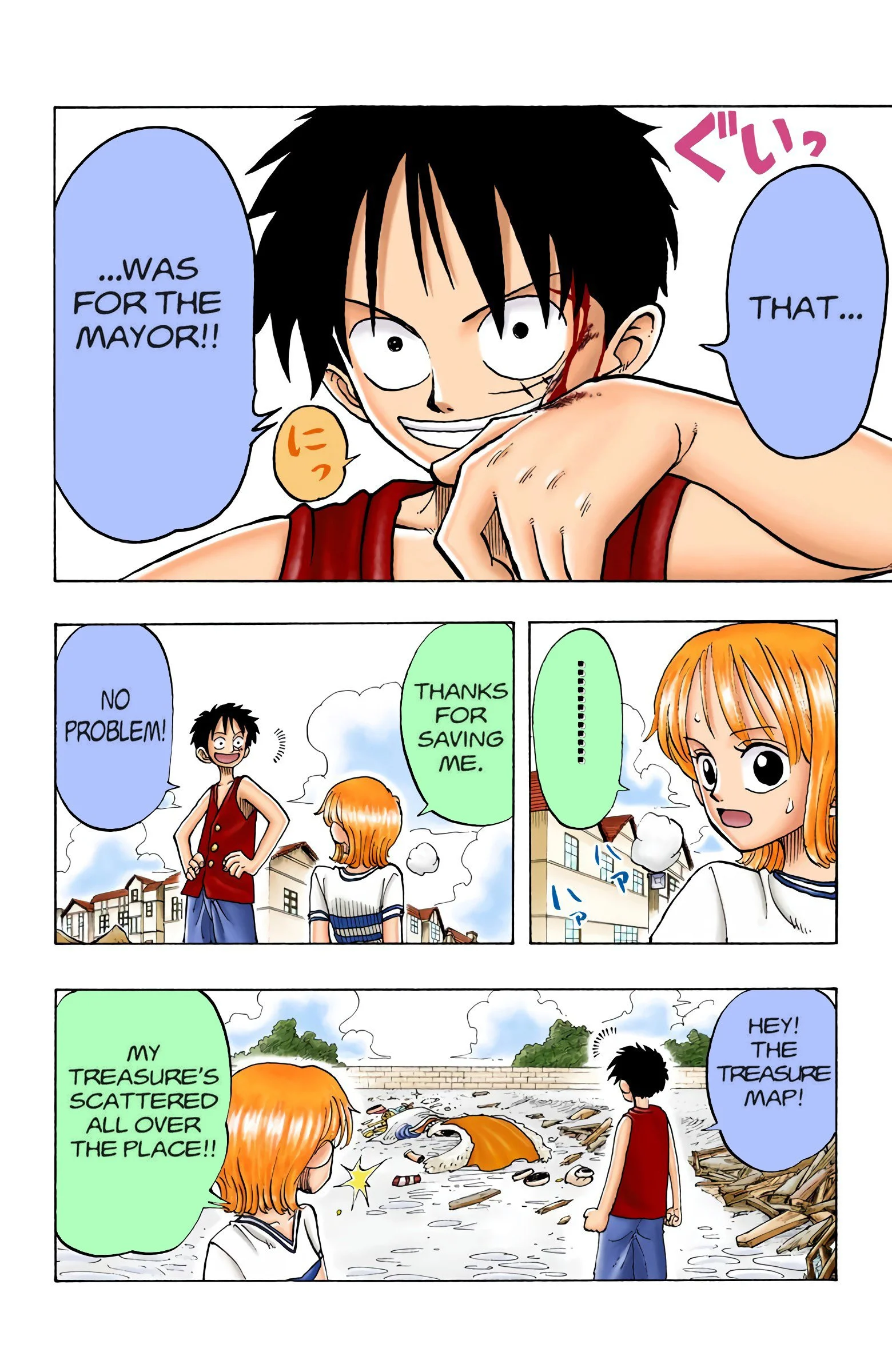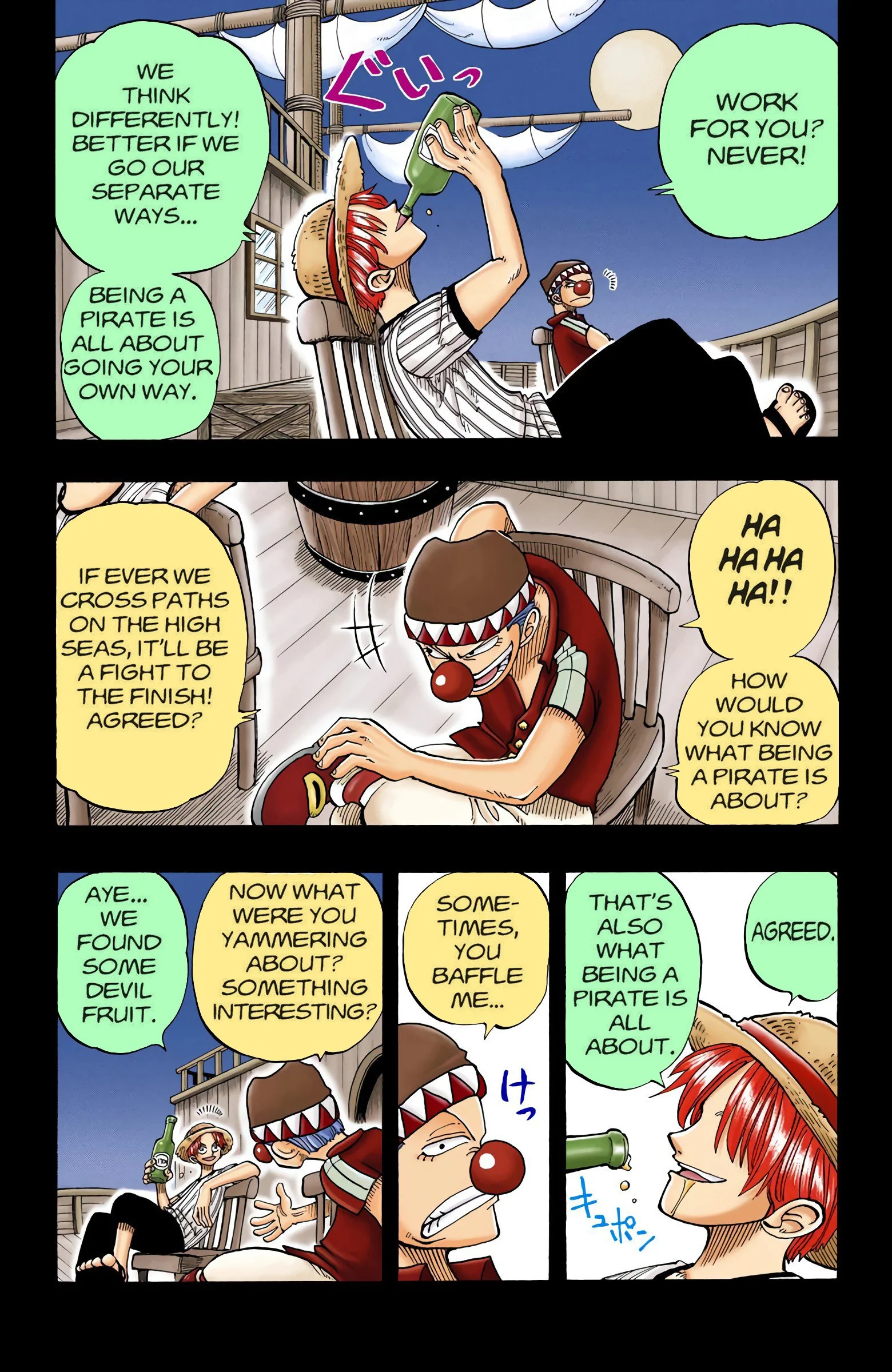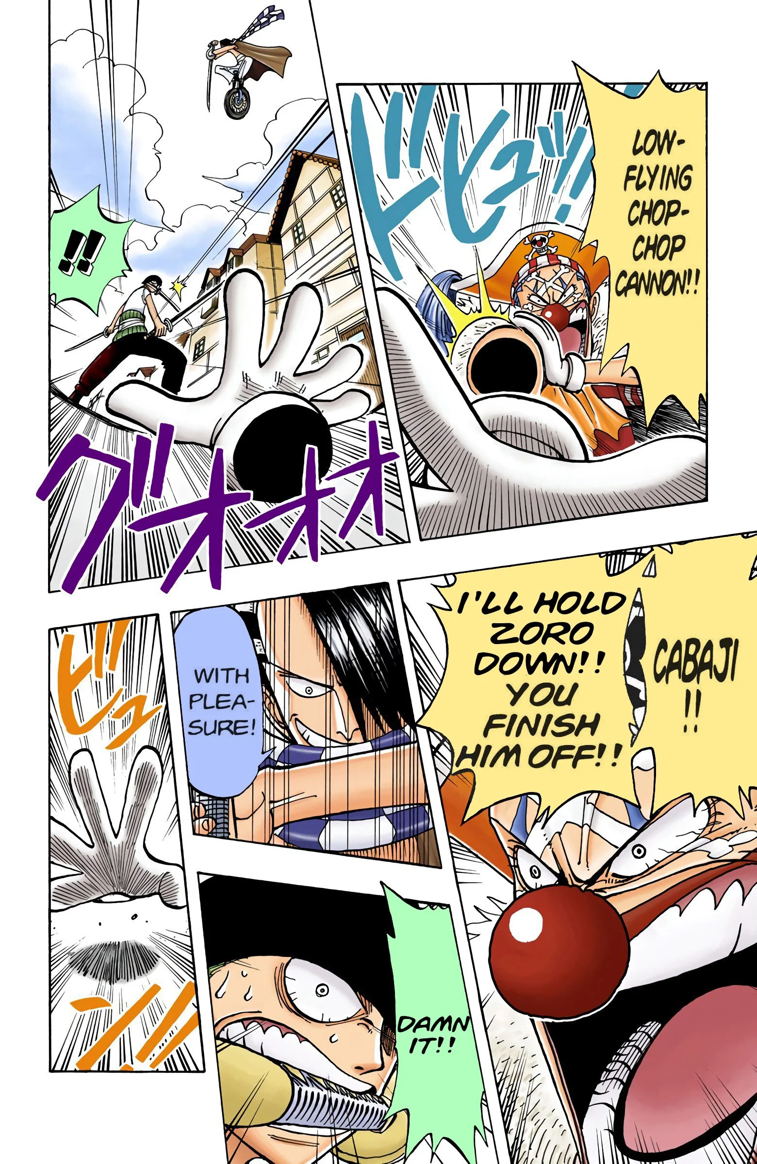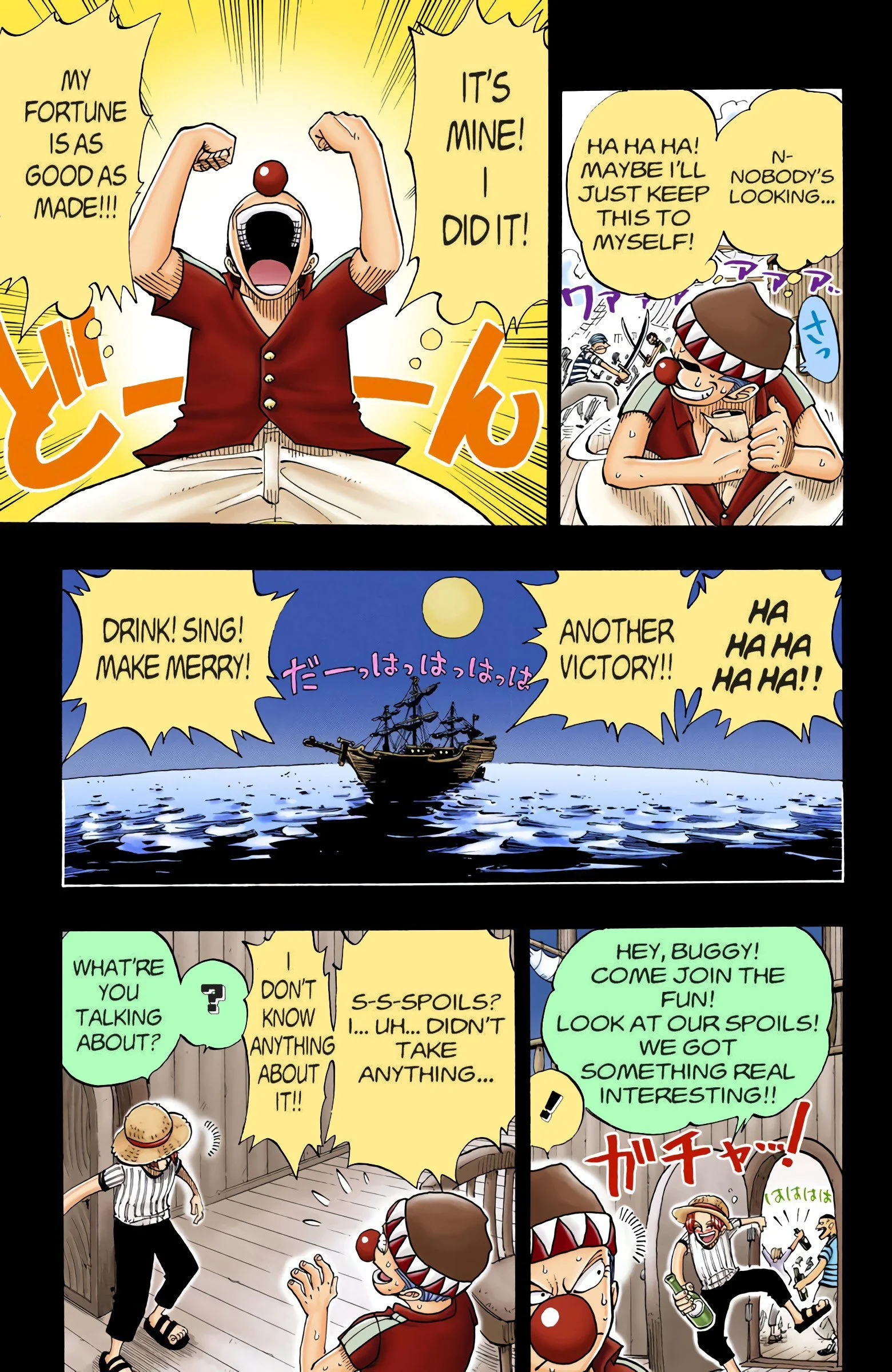 ONE PIECEseason one, “EAST BLUE”Voyage 1 | Voyage 2 | Voyage 3 | Voyage 4 | Voyage 5 | Voyage 6 | Voyage 7 | Voyage 8 | Voyage 9 | Voyage 10 | Voyage 11 | Voyage 12 S1 S2 S3 S4 S5 S6 previous season one, voyage three “VERSUS!! The Buggy Pirates” chapters 14 - 2110/27/1997 - 12/22/1997 next previous season one, voyage three next
