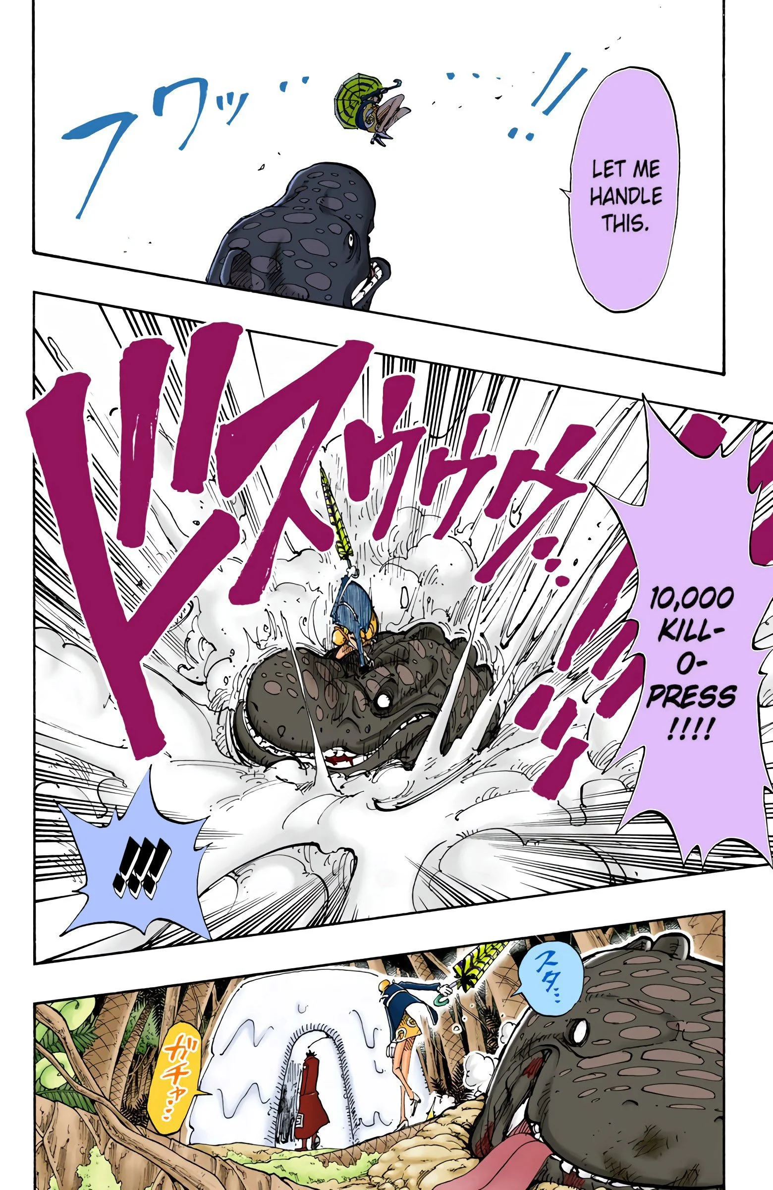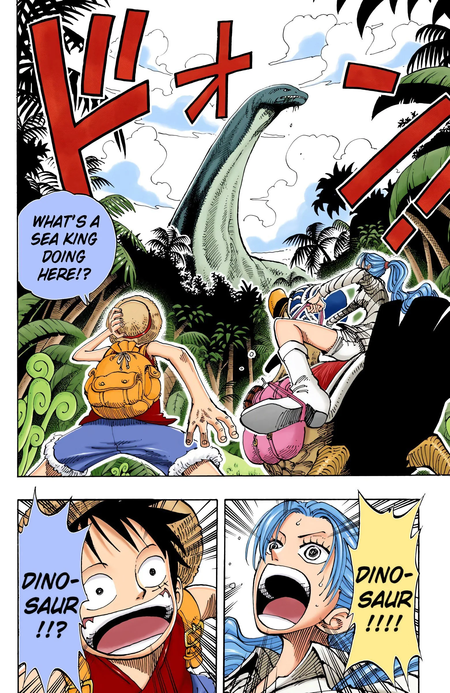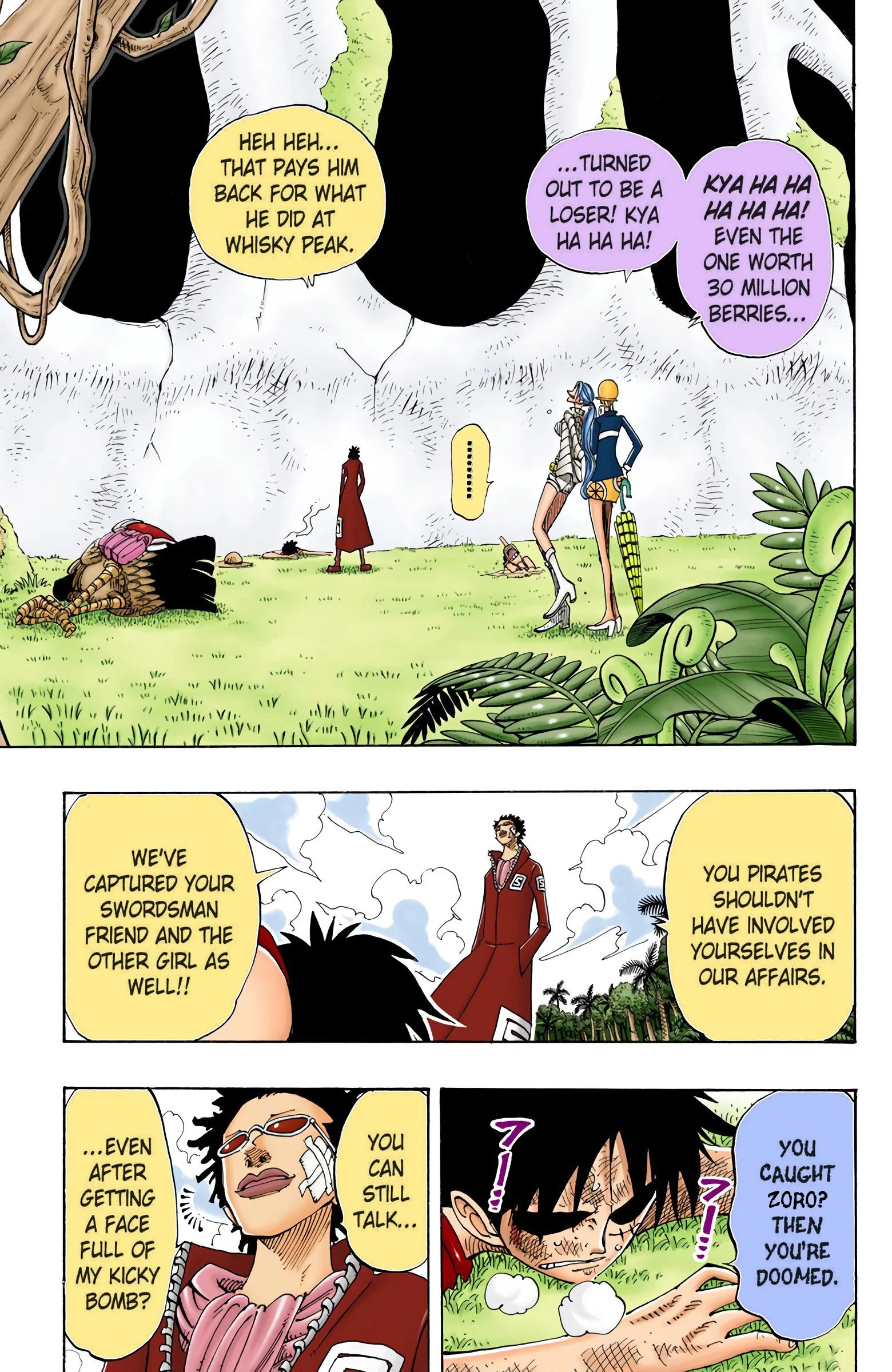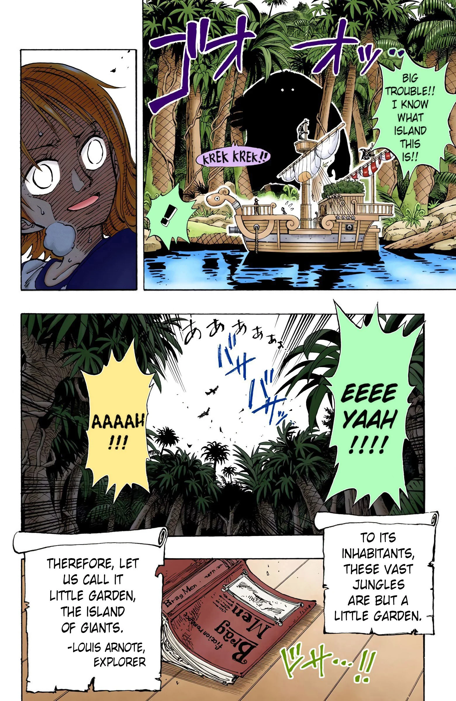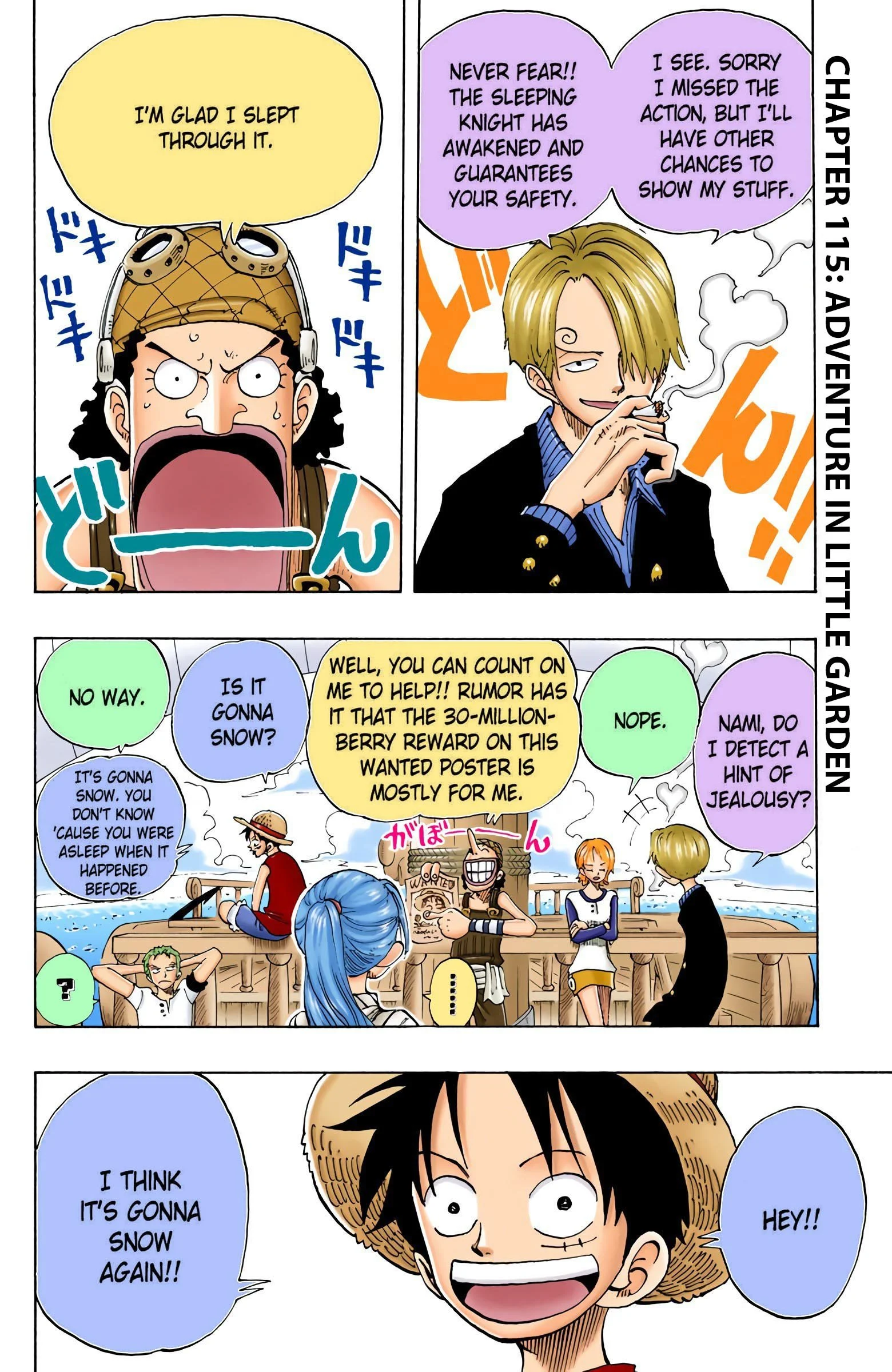 ONE PIECEseason two, “BAROQUE WORKS”Voyage 1 | Voyage 2 | Voyage 3 | Voyage 4 | Voyage 5 | Voyage 6 | Voyage 7 | Voyage 8 | Voyage 9 | Voyage 10 | Voyage 11 | Voyage 12 | Voyage 13 S1 S2 S3 S4 S5 S6 previous season two, voyage three “Adventure in Little Garden” chapters 115 - 12112/6/1999 - 1/31/2000 next previous season two, voyage three next