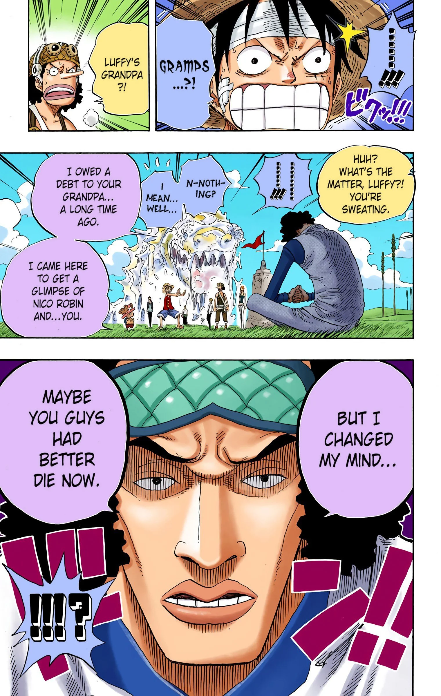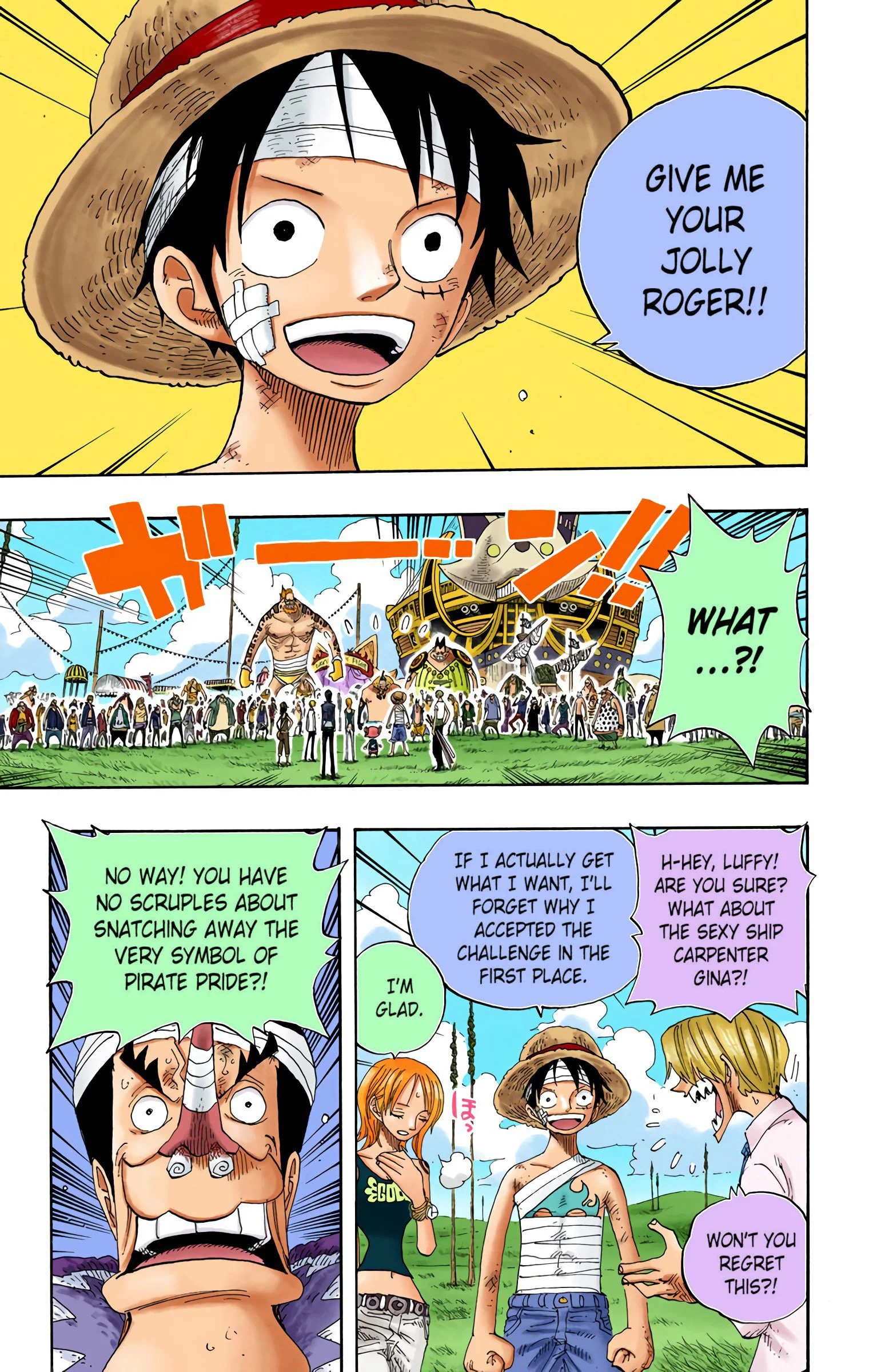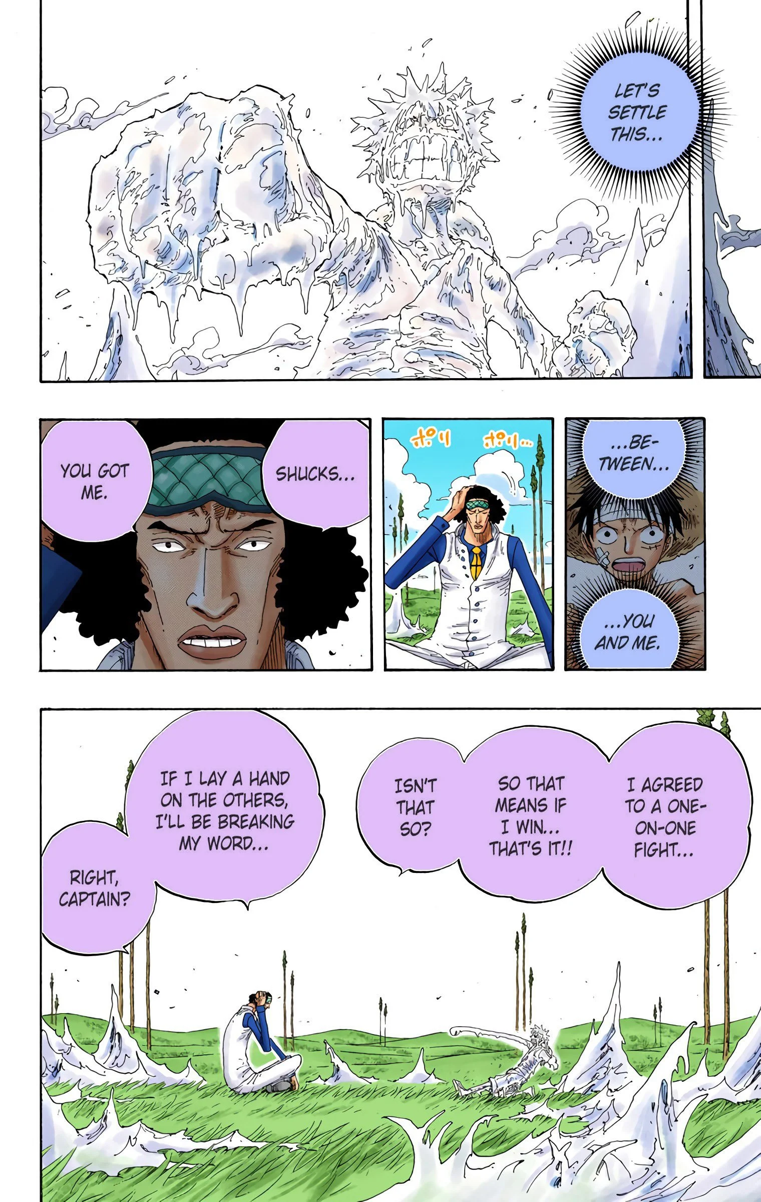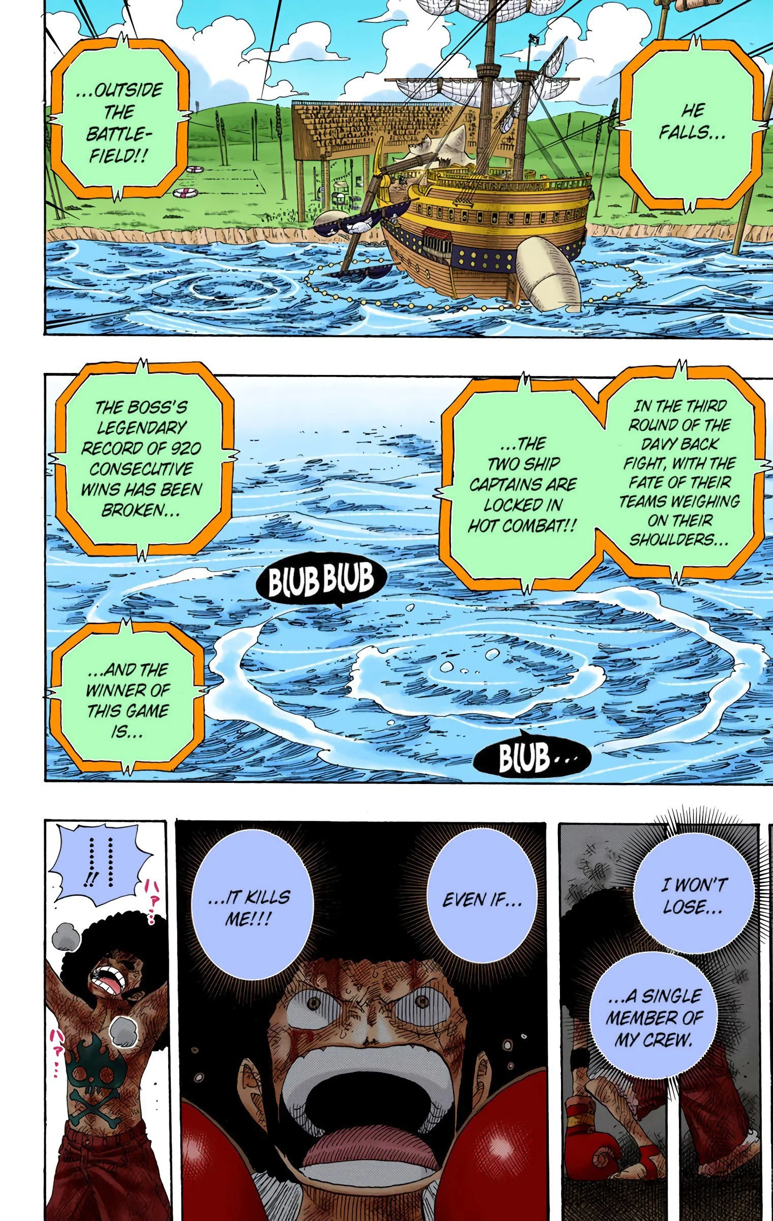 ONE PIECEseason three, “SKY ISLAND”Voyage 1 | Voyage 2 | Voyage 3 | Voyage 4 | Voyage 5 | Voyage 6 | Voyage 7 | Voyage 8 | Voyage 9 | Voyage 10 S1 S2 S3 S4 S5 S6 previous season three, voyage ten “DAVY BACK FIGHT!!” pt. 2 chapters 314 - 3213/15/2004 - 5/17/2004 next previous season three, voyage ten next