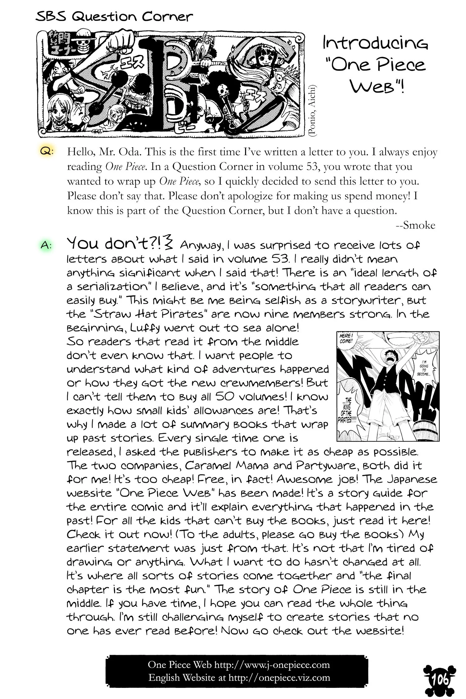 ONE PIECEseason six, “Paramount War”Voyage 1 | Voyage 2 | Voyage 3 | Voyage 4 | Voyage 5 | Voyage 6 | Voyage 7 | Voyage 8 | Voyage 9 S1 S2 S3 S4 S5 S6 previous season six, voyage two“Adventure in the Great Prison” chapters 523 - 53611/22/2008 - 3/23/2009 next previous season six, voyage two next