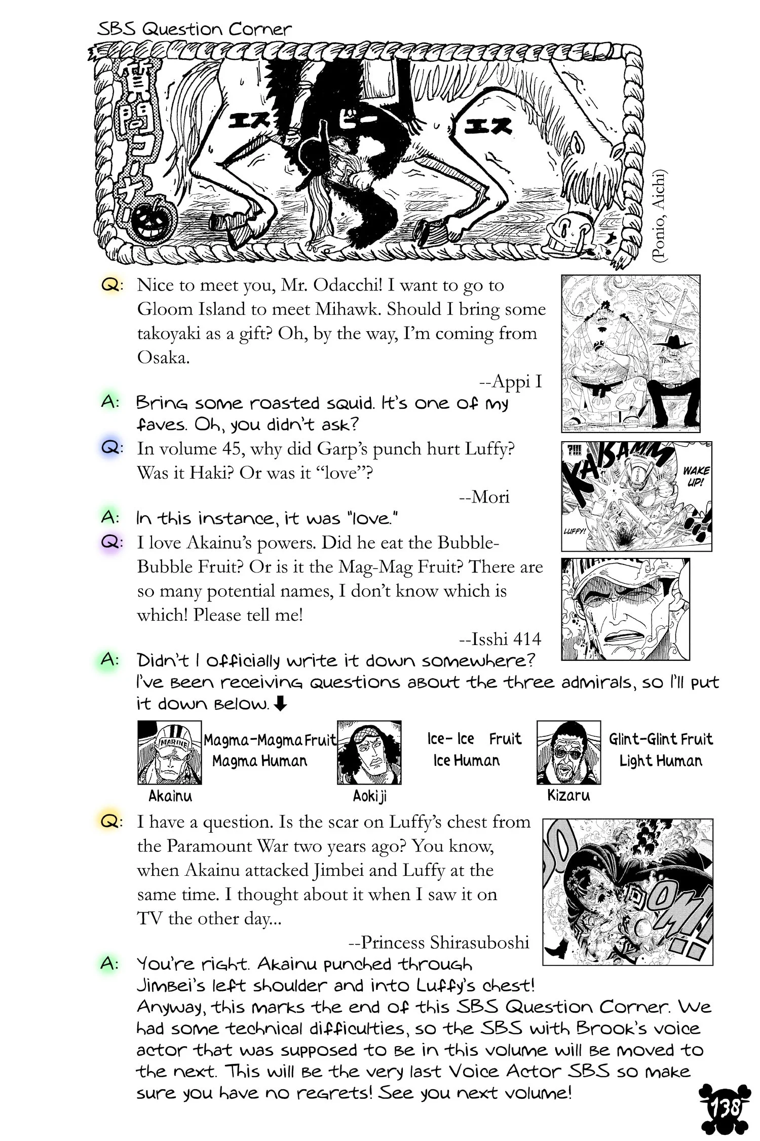 ONE PIECEseason seven, “New World”Voyage 1 | Voyage 2 | Voyage 3 | Voyage 4 | Voyage 5 | Voyage 6 | Voyage 7 | Voyage 8 | Voyage 9 | Voyage 10 S7 S8 S9 S10 S11 ??? previous season seven, voyage two“Adventure on Fish-Man Island” chapters 608 - 61912/20/2010 - 4/04/2011 next previous season seven, voyage two next